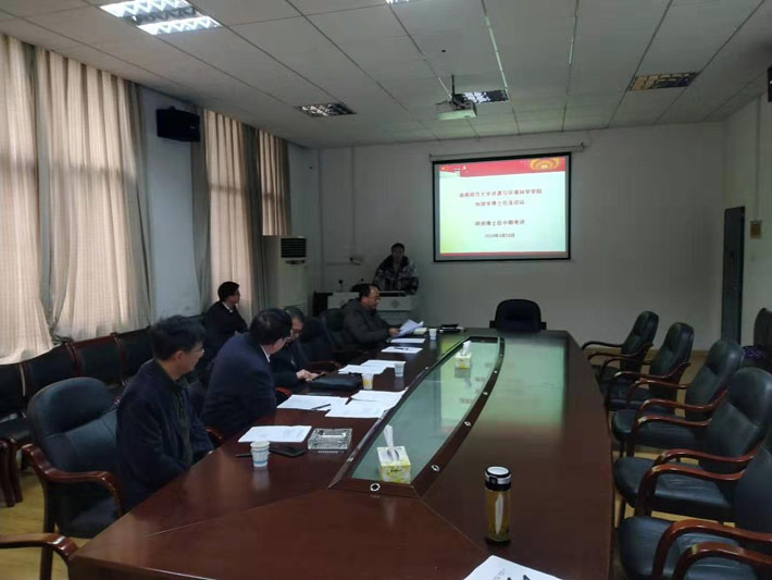 2019年3月18日上午9:00,学院在116报告厅举行首批师资博士后中期考核报告会,出席报告会的评审专家有专家组组长朱翔教授、专家组成员谢炳庚、秦建新、贺新光和杨波教授,会议由朱翔教授主持。