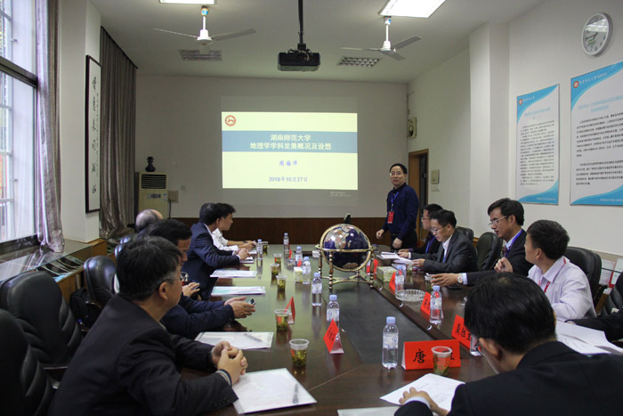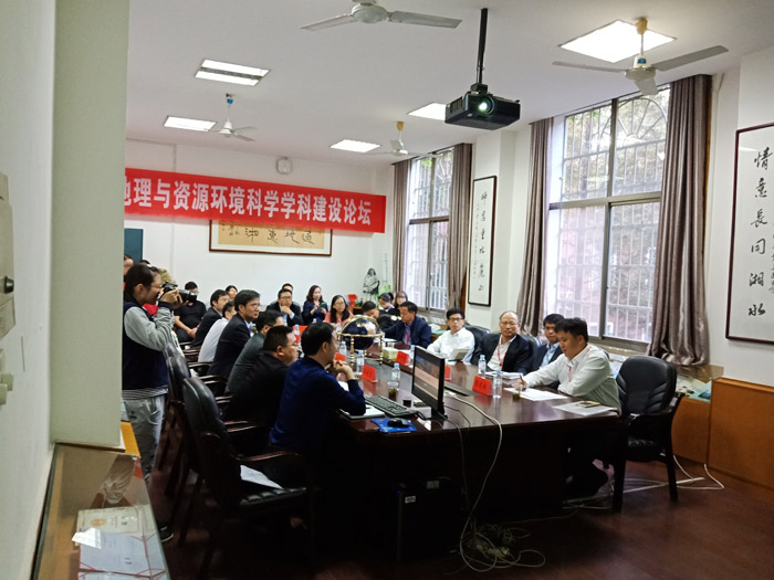 2018年10月27日下午,学院在201会议室举行“地理与资源环境科学学科建设论坛”。首都经济贸易大学副校长杨开忠教授、中国地质科学院岩溶地质研究所蒋忠诚研究员、《地理学报》编辑部主任何书金研究员、华中师范大学城市与环境科学学院龚胜生教授、湖南城市学院党委副书记汤放华教授、中科院地理所龙花楼研究员、湖南外贸职业学院唐瑾教授、中科院南京土壤所彭新华研究员、中科院南京湖泊所张运林研究员、复旦大学大气与海洋科学系游庆龙教授应邀参加论坛。论坛由学院院长谢炳庚教授主持。周国华副院长从师资、科研和学位点建设等方面简要介绍了365官网学科建设现状及未来发展设想。与会专家对学校80周年校庆和学院学科建设取得的成就表示热烈祝贺,并从学科发展定位、学科方向选择、学科平台建设、特色学科打造、高级别课题申报、高水平人才引进及学术团队建设等方面提出了建议,对学院未来发展有重要的启发意义。