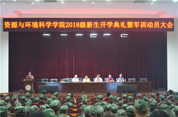 9月11日上午,资源与环境科学学院2018级新生开学典礼暨军训动员大会于国际学术报告厅举行。资环院院长谢炳庚、院党委书记彭才华、副院长周国华、副院长谭长银、副院长胡雪松、各系系主任、班导师及学工办全体出席典礼。开学典礼由党委副书记陈媛主持。