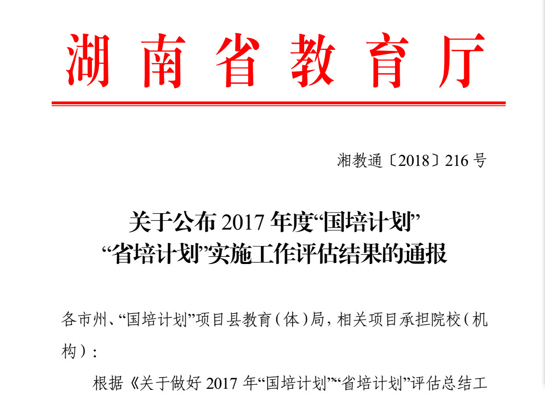 转自:“我校在2017年“国培”“省培”绩效考核评估中获佳绩 ”(湖南省教育管理干部培训办公室)