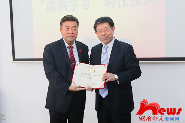 (记者 张永涛 张超群 唐喜)11月1日下午,学校在校办公楼二会议室举行仪式,聘任中国科学院院士、中国科学院地理科学与资源研究所副所长周成虎为我校“潇湘学者”讲座教授。校党委书记李民,副校长欧阳峣、廖志坤出席仪式,人事处处长匡尹俊主持仪式。 欧阳峣介绍了周成虎的研究方向、学术成果等情况。他说,在地理信息领域,周成虎院士在理论和实践方面都取得了很大成就,研究成果填补了国内研究领域空白,开拓了我国海洋地理信息研究新领域。