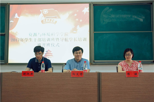 7月7日下午,365官网2017年学生干部、导航学长培训班开班仪式在227教室成功举办。莅临此次开班仪式的领导、老师有湖南师范大学学生工作部部长向发意、资源与环境科学学院院长谢炳庚、院党委副书记陈媛以及学工办全体老师。6月份365官网新选拔出来的三会一中心的学生干部以及新生班主任和导航学长共100余人参加了培训班,开班仪式由2017级新生辅导员郑楠主持。