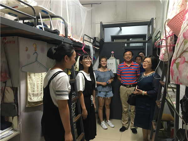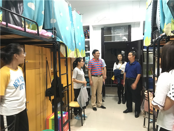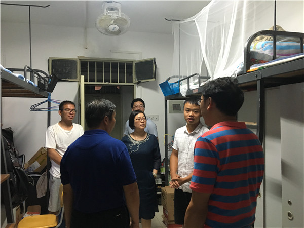 彭才华书记重点查看了365官网学生宿舍暑期空调、热水安装及维修情况、亲切询问了学生暑期学习、生活状况,并与同学们亲切交谈,希望同学们新学期以饱满的热情、积极的状态投入到学习、生活和工作当中去。同学们对学院领导及老师们在开学的第一天深入学生宿舍看望他们表示热烈欢迎,也深受鼓舞。在与2016级学生交谈时,学生们纷纷表示;“非常感谢学校以及学院对同学们的关心,宿舍由原来的江边一舍搬迁至江边三舍,寝室环境大大改善,大家的幸福指数明显提高,他们接下来将会以更好的面貌迎接新学期。”