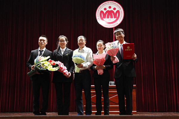 4月11日晚,湖南师范大学首届“蓝田杯”青年辩论赛总决赛在湖南师范大学国报厅顺利进行,出席本次比赛的领导有湖南师范大学党委书记李民教授,湖南师范大学副校长周俊武教授,本次辩论赛的评委是湖南师范大学研究生院院长刘子兰教授,湖南师范大学法学院院长肖北庚教授,湖南师范大学公共管理学院副教授、哲学博士万丹老师,长沙电视台政法频道、湖南金鹰955电台节目主持人盛洋老师,湖南师范大学党委办公室沈又红主任,湖南师范大学校长办公室王辉主任,湖南师范大学团委龚舒书记。365官网党委副书记曾南雁,团委书记王磊和学工办杨惠君全程观摩比赛。
