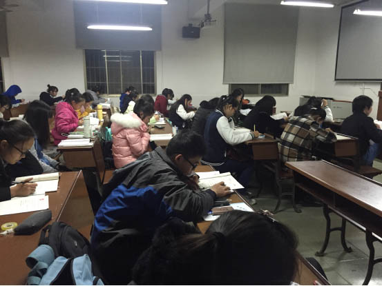 晚自习为2015级提供三间教室,并安排了座次表。为2014级、2013级安排了两间教室,每晚有辅导员陪同。同学们积极参与,每晚座无虚席。有学生说:“我们并不排斥晚自习,我们认为自习才是属于自己的时间。”