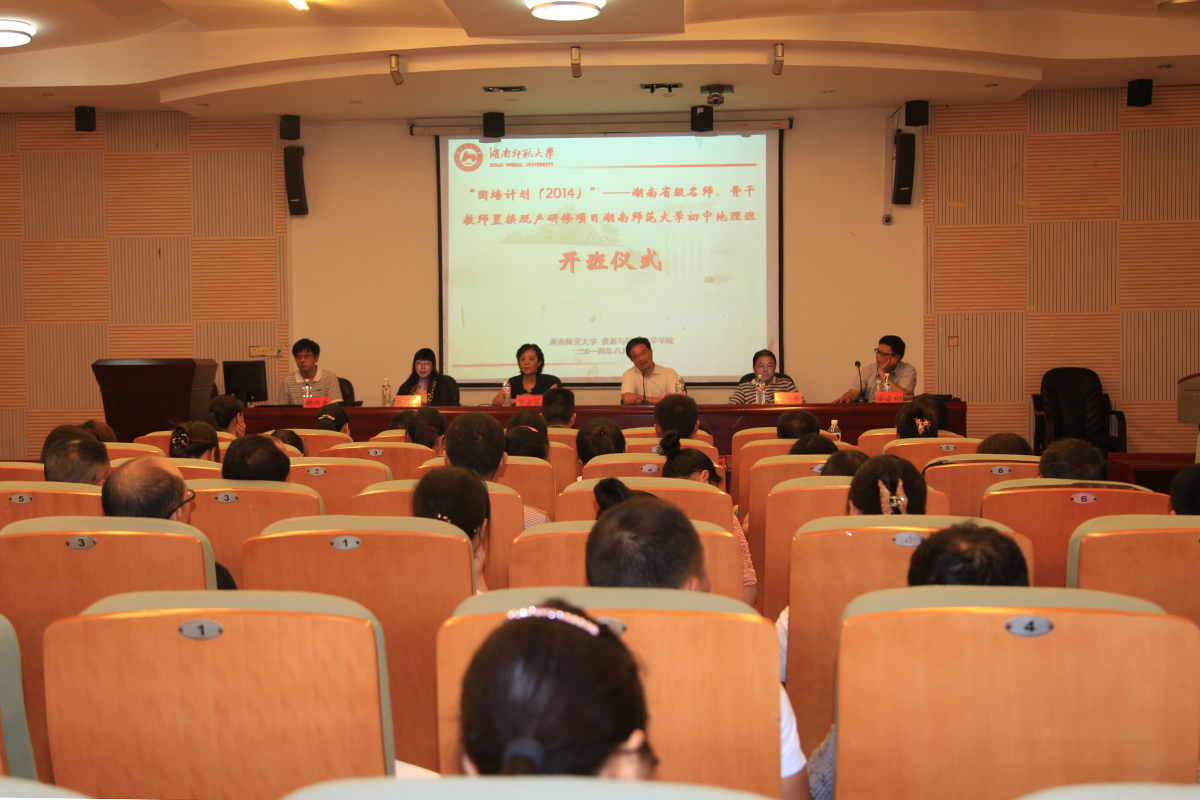8月2日上午8点30分,“国培计划”(2014)——湖南省初中地理省级名师、骨干教师置换脱产研修项目在365官网开班。湖南省教育厅副厅级巡视员贺安溪、我校副校长王善平教授、湖南省教育管理干部培训办公室常务副主任、湖南师范大学中学校长和教师培训部主任赵巧霞同志、办公室副主任、培训部副主任朱常青同志、院长谢炳庚教授、党委书记安云初同志、副院长周国华教授、党委副书记曾南雁同志等出席了开班典礼。典礼由365官网副院长胡雪松主持。