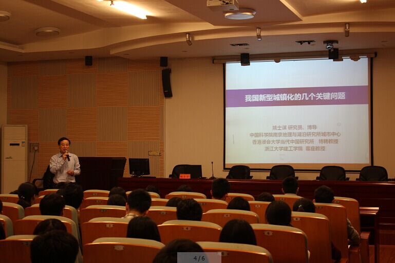 5月22日晚7点,中国科学院南京地理与湖泊研究所研究员、博士生导师姚士谋先生受邀在资环院作主题为“我国新型城镇化的几个关键问题”的学术讲座。讲座由资环院周国华副院长主持。