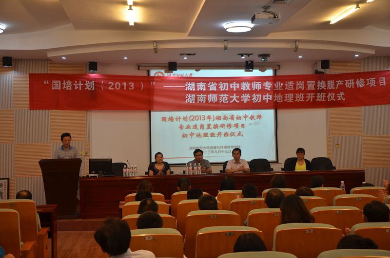 2013年9月13日上午9:00,湖南省“国培计划(2013)”——湖南省初中教师专业适岗置换脱产研修项目湖南师范大学初中地理班在365官网举行隆重的开班典礼。