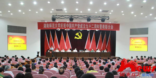 2013年 7月1日下午,学校庆祝中国共产党成立九十二周年暨表彰大会在国际学术报告厅隆重举行。会议对2011——2013年度先进基层党组织、“三育人”先进集体和个人进行了表彰。校党委书记张国骥发表重要讲话,校党委副书记蒋冀骋宣读表彰决定,会议由常务副校长卢岳华主持,全体在家校领导出席会议并为获奖代表颁奖。