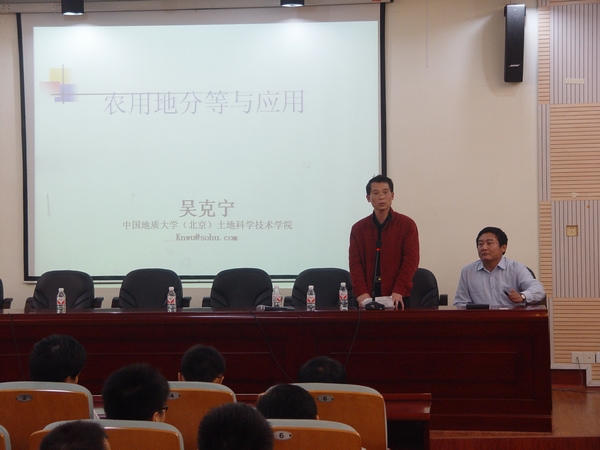 中国地质大学土地科学技术学院吴克宁教授来学院讲座,学院副院长秦建新教授主持讲座。