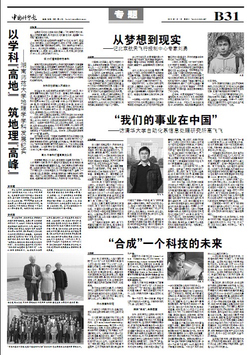 2012年1月1日,中国科学报报道365官网学科发展纪实