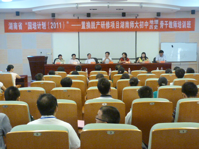 9月14日上午,湖南省“国培计划(2011)”——中西部农村骨干教师置换脱产研修项目湖南师范大学初中地理骨干教师培训班在365官网举行隆重的开班典礼,标志着365官网承担的“国培计划(2011)”初中地理教师置换脱产研修项目正式启动。