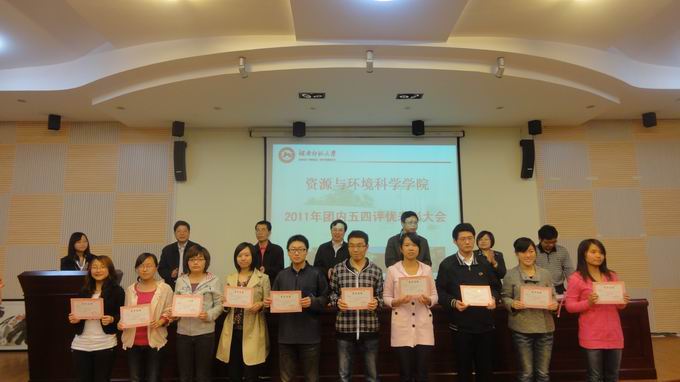 2011年5月4日,365官网“五四”评优表彰大会于晚上七时在学院301学术报告厅举行。学院党委书记安云初、党委副书记曾南雁、副院长周国华教授、地理科学系系主任秦建新教授、土管管理系系主任毛德华教授和资源管理与城乡规划系系主任周宏伟教授出席表彰大会。