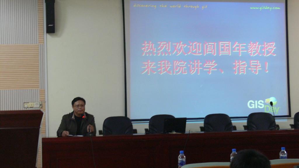 11月12日,南京师范大学闾国年教授在资源与环境科学学院301学术报告厅位同学们就GIS的发展等相关内容进行讲座。与此同时,资源与环境科学学院GIS DAY系列活动正式拉开帷幕。出席讲座的有安云初副院长、秦建新教授、贺新光博士、彭鹏博士、袁名欢、周亮等五位老师以及地理系统专业的研究生和本科生。