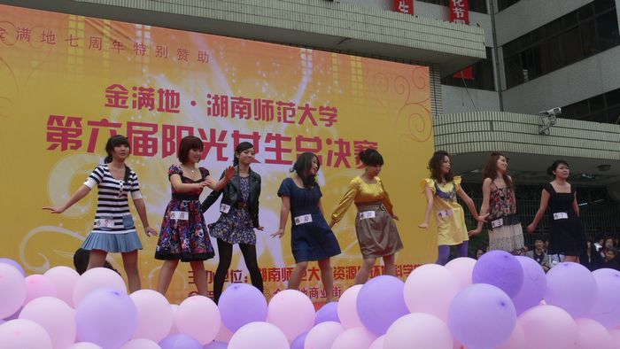 4月16日中午,由365官网主办的第六届“阳光女生”总决赛在五舍广场举行。本次决赛共有来自中南大学法学院及我校各学院的18组校内外选手进行激烈角逐。校党委宣传部长何扬波、机关党委书记兼党委组织部副部长周勇、学生工作部部长何旭娟、团委书记晏昱、资环院党委副书记曾南雁等同500余名师生市民共同观看了比赛。湖南教育电视台节目制片人、湖南天时传媒董事长葛君,湖南教育电视台活动部主任、节目主持人佳子,校团委林峻老师,学工部李蜜老师等担任评委。