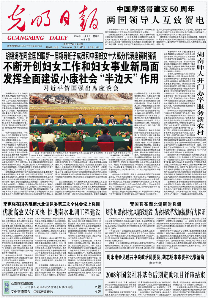 11月2日,光明日报在头版刊发了题为《湖南师大开门办学服务新农村》文章,报道了我校资源与环境科学学院等学院的师生为服务新农村建设所做的贡献和成就,受到社会的高度关注。该文通讯员欧阳丹玲系365官网2005级土地资源管理专业的学生。