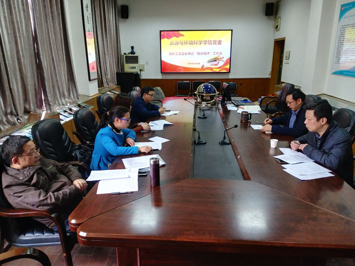 3月28日下午,资源与环境科学学院党委在学院201会议室举行2018年度党支部书记述职评议会。院党委书记彭才华、党委副书记陈媛、党委宣传委员胡雪松参加会议,会议由学院党委组织委员覃志斌老师主持。