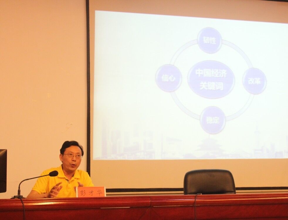 彭才华从“我国经济现状”出发,以“新时代高质量发展的背景与突破口”为主题,从三个方面进行阐释:2018年以来我国经济质量效益不断提升;我国当前面临的挑战与机遇;当前支撑经济迈向高质量发展的有利条件。