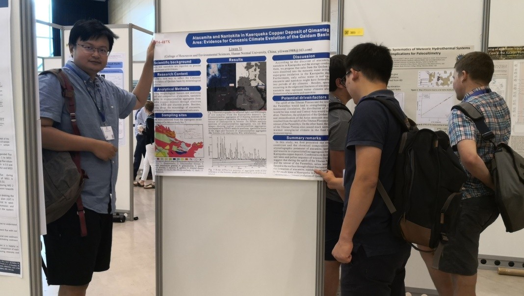 参加此次学术年会的4087名代表来自全球近百个国家与地区,除我校外,国内还有来自中国地质大学、南京大学、西安科技大学等多所高校的相关代表参会。会议期间,365官网代表针对性的听取了2395场报告中的32场报告,与包括美国宾夕法尼亚州立大学的Hiroshi Ohmoto教授在内的多名学者进行了深入的学术交流。会议中,易立文博士还在分会场作了题为《Atacamite and Nantokite in Kaerqueka Copper Deposit of Qimantag Area:Evidence for Cenozoic Climate Evolution of the Qaidam Basin》的学术报告,并与多名学者进行了有关探讨。