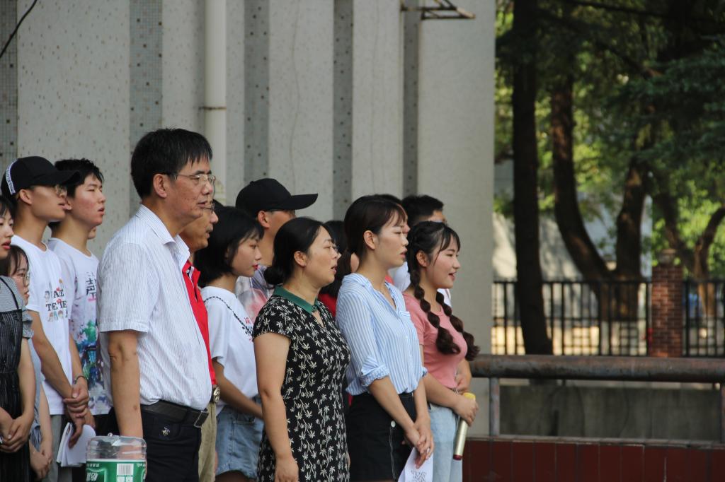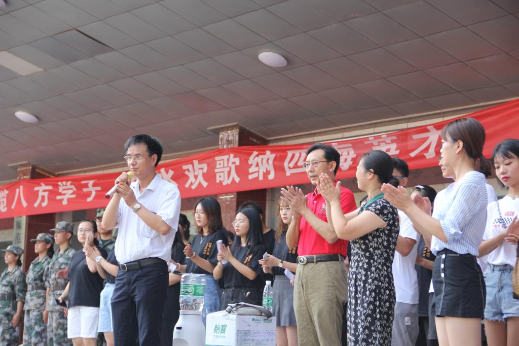 在军训场上,院长谢炳庚代表学院表达了对新生的问候,他期待新生能够在接下来的四年里努力拼博、不断成长;院党委书记彭才华也向新生送去了节日的祝福,他嘱托同学们牢记青年使命、不忘求学初心。然后院长、书记与老师们一起给军训教官以及全体新生发放了月饼,送去了节日的问候。在场的全体师生共同高唱校歌,歌声中洋溢着学子们敬爱师长、爱校荣校的家国情怀,现场领导、老师与新生们合影留念。