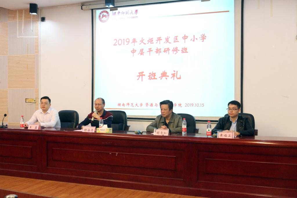 10月15日上午8:30,2019年火炬开发区中小学中层干部研修班在365官网301报告厅举行隆重的开班典礼。广东省中山市火炬开发区教育事务指导中心副主任钟海清,365官网副院长胡雪松等出席了典礼。典礼由365官网成教办主任王磊主持。