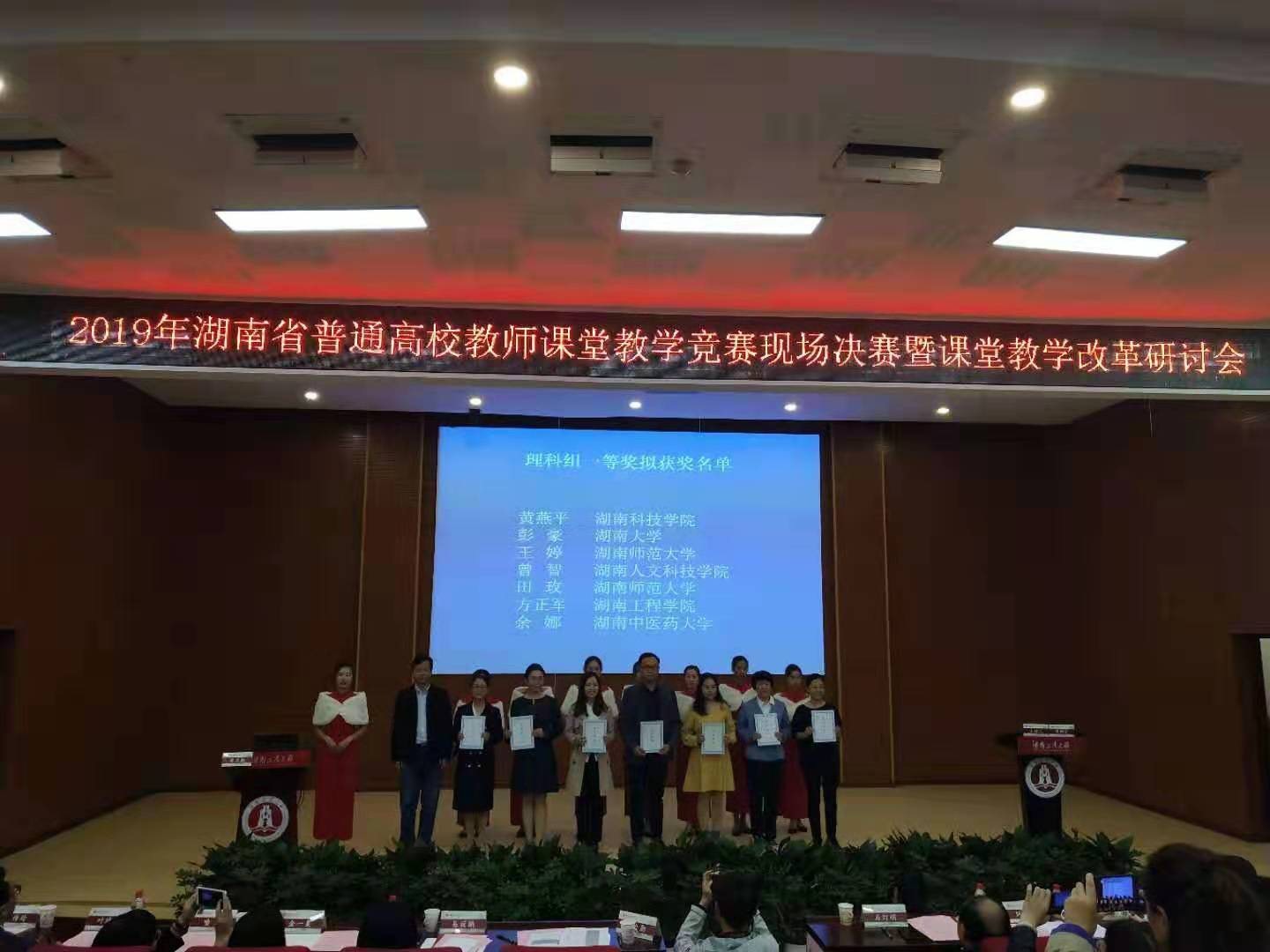 10月26日,2019年湖南省教师课堂教学竞赛在湖南工商大学隆重举行,365官网王婷老师斩获教学竞赛一等奖,同时被省教育工会授予“湖南省普通高校教学能手”称号。这是365官网参赛以来的最好成绩,充分展示了365官网教师的教学水平以及课堂教学的质量与特色。