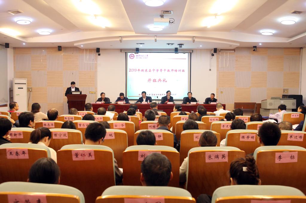 11月17日上午8:00,2019年衡东县中学骨干教师培训班在365官网301报告厅举行隆重的开班典礼。衡东县教育局局长陈宏建,衡东县教育局副局长肖文新,衡东县教师进修学校校长颜亚华,衡东县教育局教师工作股股长刘启贤,365官网副院长胡雪松出席了典礼。典礼由365官网王磊老师主持。