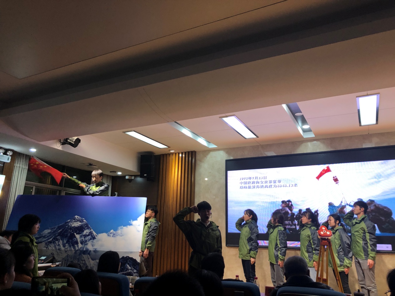 《This is China》节目融入365官网地理特色与思政元素,分《攀登者》、《大禹治水》、《岳阳楼记》、《郑和下西洋》四幕介绍壮美中国的山、河、湖、海,其内涵丰富立意高远。从郑和下西洋到当今一带一路,从黄河水患治理、洞庭湖湿地保护到珠穆朗玛峰的勘测,展现了人与自然和谐共生的理念,以及当代地理人“亩厦阡陌、御守尺规”的担当与职责。节目在同学们生动形象的表演下,获得在场师生的阵阵掌声和欢呼声,并最终荣获专业类特等奖。