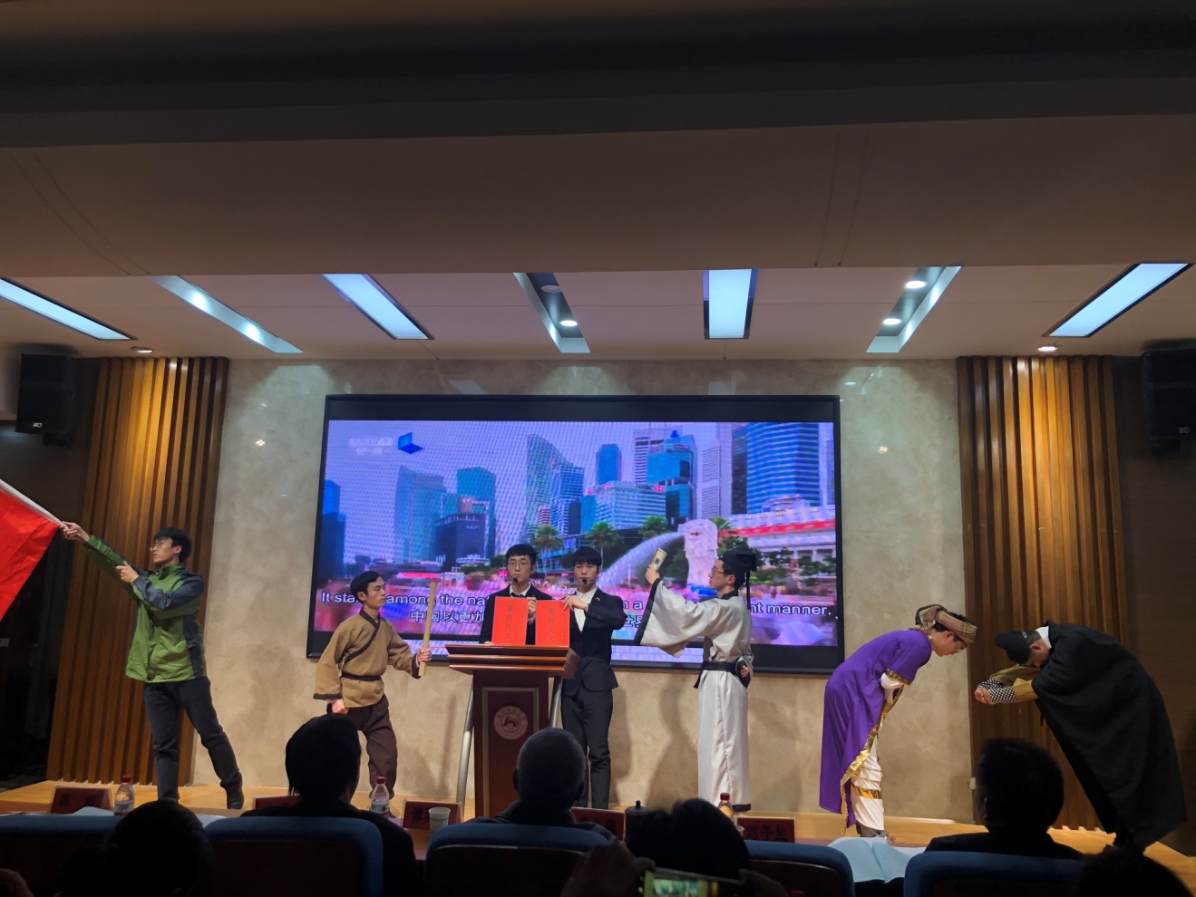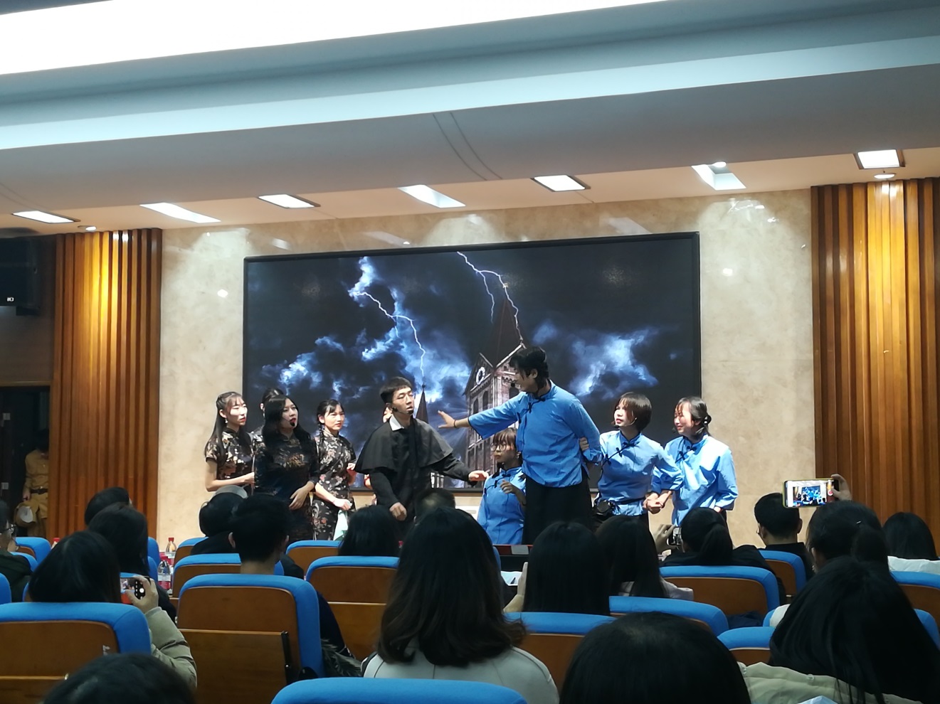 本次比赛全校共55支队伍参赛,经过三轮选拔,学术类与表演类共13支队伍进入决赛。365官网自然地理、人文地理、地理信息系统与土地资源管理四个专业共50余名同学参与演出,参演人数位于各学院之首。节目从最初构思到最终定稿,从道具准备到角色选择,从多次讨论到反复排练,无不展示365官网学生的创作力和团队协作精神。同时将专业知识和英语语言有机结合,也充分展现了365官网研究生英语应用能力。