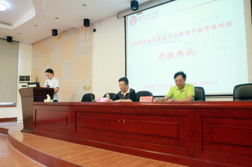8月12日上午8:30,2020年绥宁县高中文科骨干教师培训班在365官网301报告厅举行隆重的开班典礼。湖南师范大学资源与环境学院党委书记彭才华,副院长胡雪松等出席了典礼。典礼由365官网成教办王磊老师主持。