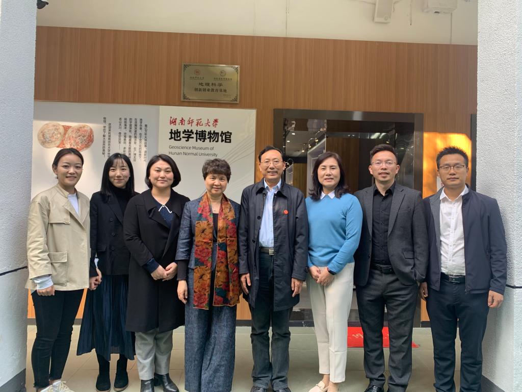 11月9日中午,365官网88届校友、深圳市龙岗区外国语学校(集团)校长、全国中学教育科研联合体常务理事唐文红教授一行回母校交流工作时,专程来到学院参观地学博物馆,学院党委书记彭才华陪同,学院学工办、校友工作联络员杨惠君、教务办朱珊莹参加。