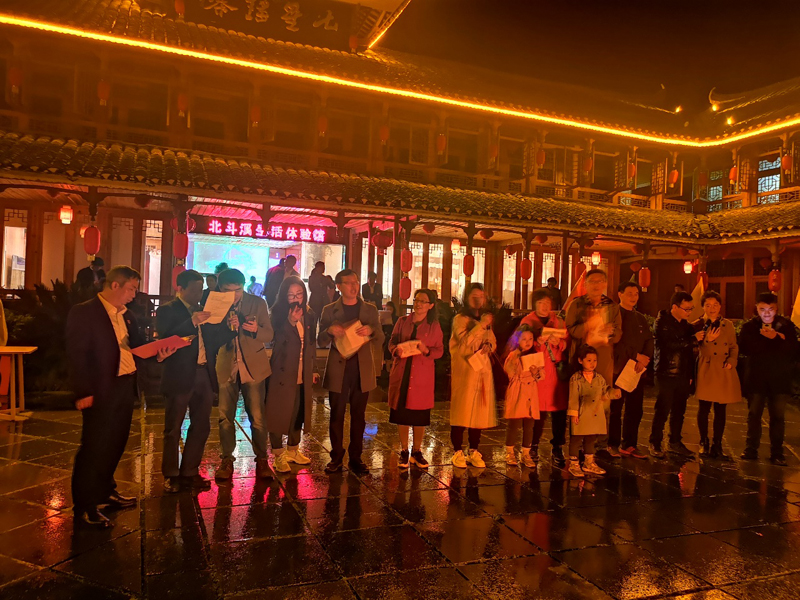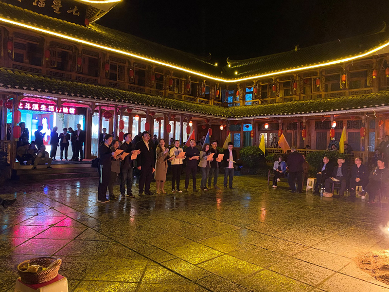 夜幕降临后,当地村民在小镇的文化广场中间燃起了熊熊大火。老师们和当地村民围坐一圈,在轻松愉快的氛围下举行“湖南师范大学Beat365唯一官方网站、溆浦县北斗溪镇‘颂党恩,跟党走’”联欢晚会。既有脍炙人口的红歌联唱,也有慷慨激昂的爱国诗歌朗诵;既有神秘的魔术表演和热情的花瑶族舞,也有搞笑易懂的三句半;既有紧张兴奋的游戏互动,亦有新老职工及当地村民的谈心交流。学院党委书记彭才华等院领导极具感染力的诗歌朗诵节目《可爱的中国》使整场晚会达到最高潮。大家在领略革命烈士方志敏爱国情怀的同时,也在领导们声情并茂的表演下备受鼓舞。整场晚会在火光映衬下,你方唱罢我登场,载歌载舞尽欢颜!最后溆浦县人民政府副县长、北斗溪镇党委书记梁金华发言,她对学院支持地方发展所做的工作表示感谢,并希望双方进一步加强校地合作,为乡村振兴继续贡献智慧和力量!