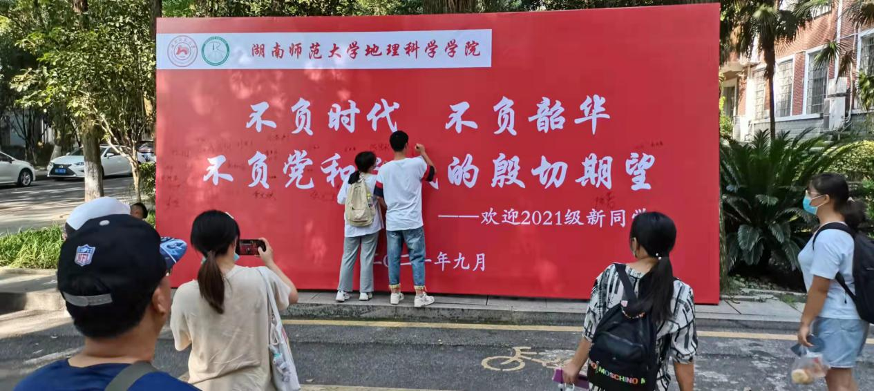 学院高度重视新生的迎新工作,院长谢炳庚、党委副书记陈媛先后前往学院迎新报到点检查指导工作,了解迎新的各项准备工作和进展情况,慰问迎新工作人员,与新生和家长亲切交流,鼓励新生尽快转变角色,适应大学生活,努力成长成才。新生报到结束当晚,学院领导带领学工办辅导员及各专业班导师一起下寝看望新生。