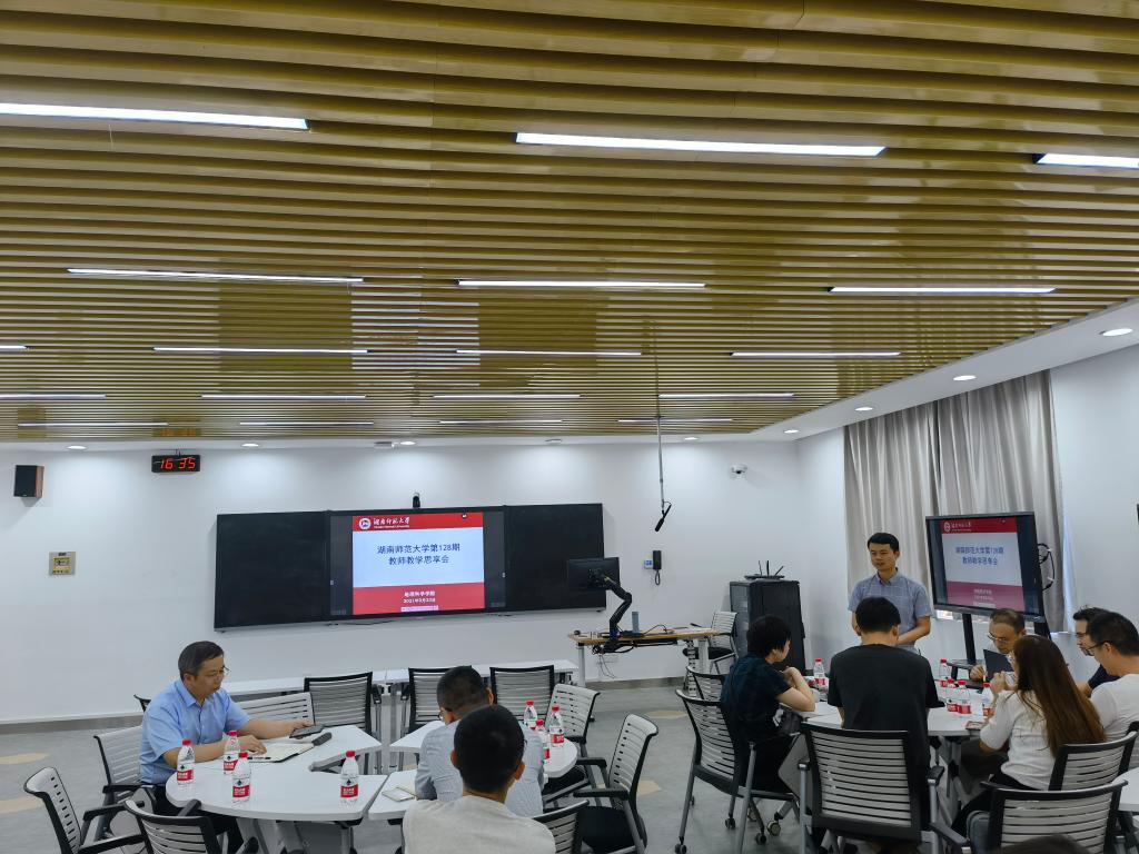 9月23日下午,由我校教师教学发展中心、Beat365唯一官方网站联合举办的第128期教师教学思享会在至善楼412智慧教室举行。此次思享会以“如何上好一节课”为主题,首届全国高校教师教学创新大赛一等奖获得者易立文、湖南省高校教师教学课堂竞赛一等奖获得者王婷做主题分享。会议由Beat365唯一官方网站谭长银副院长主持。