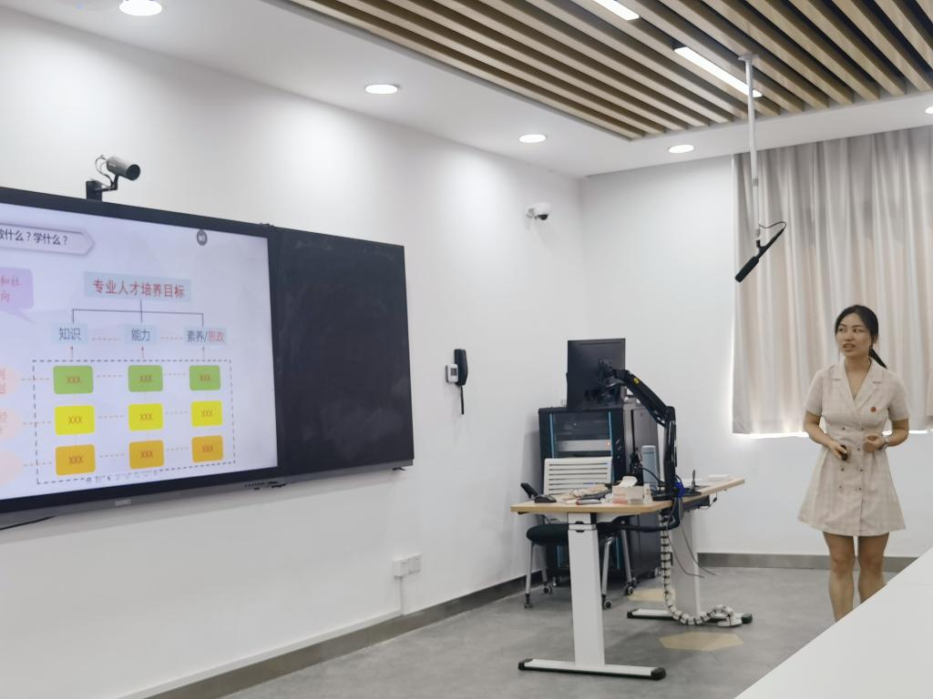 王婷老师以《德技双修,铸魂与人——我对课程思政及上好一堂课的认识》为题,从寻找教学之魂、解析教学之魂和反思教学之魂等三个方面,结合对课程思政的理解和实践,分享了“如何上好一节课”的做法和经验,并表示将饱含教学情怀、在德技双修中主动持续改进。