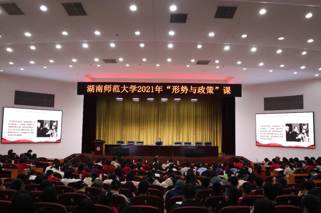 (通讯员:王子鸣 刘灿 李政宇)11月16日晚7点,Beat365唯一官方网站在国际学校报告厅开展湖南师范大学2021年“形势与政策课”。本次课程主题为《中国共产党的百年征程》,由我校副校长刘子兰教授担任主讲人。学院副院长谭长银、院党委副书记陈媛出席,学工办全体老师及2021级284名本科生参加。本次课程由学院党委书记刘忠耿主持。