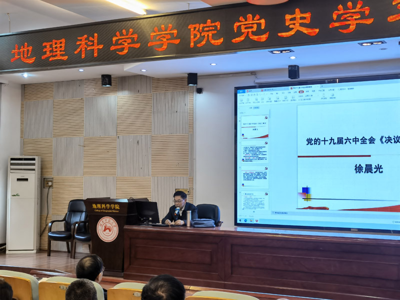徐晨光就党的十九届六中全会审议通过的《中共中央关于党的百年奋斗重大成就和历史经验的决议》作专题辅导报告。他结合党史和学习感悟,深入剖析会议内容,他表示,新时代党员要坚定正确的立场观点,保持与人民群众的血肉联系,走好新的赶考路。他希望老师们用具体、客观、全面的观点看待党史,不忘初心,牢记使命。