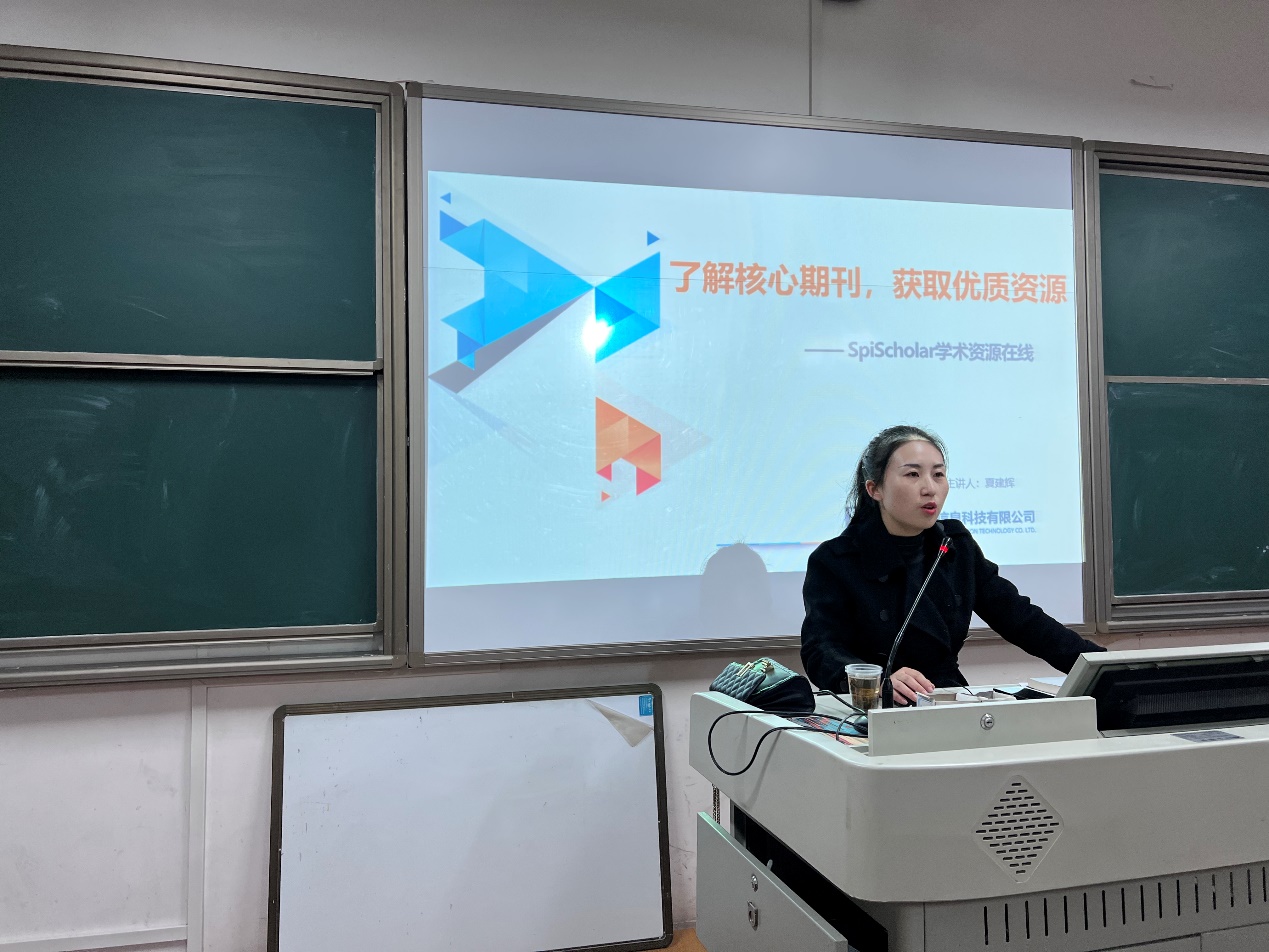 (通讯员 宋文伍 朱守涛)12月16日下午在经纬楼226教室,地科院科研办邀请到湖南纬度信息科技有限公司夏建辉老师,为365官网2021级研究生介绍了其公司旗下的“SpiScholar 学术资源在线”数据平台。