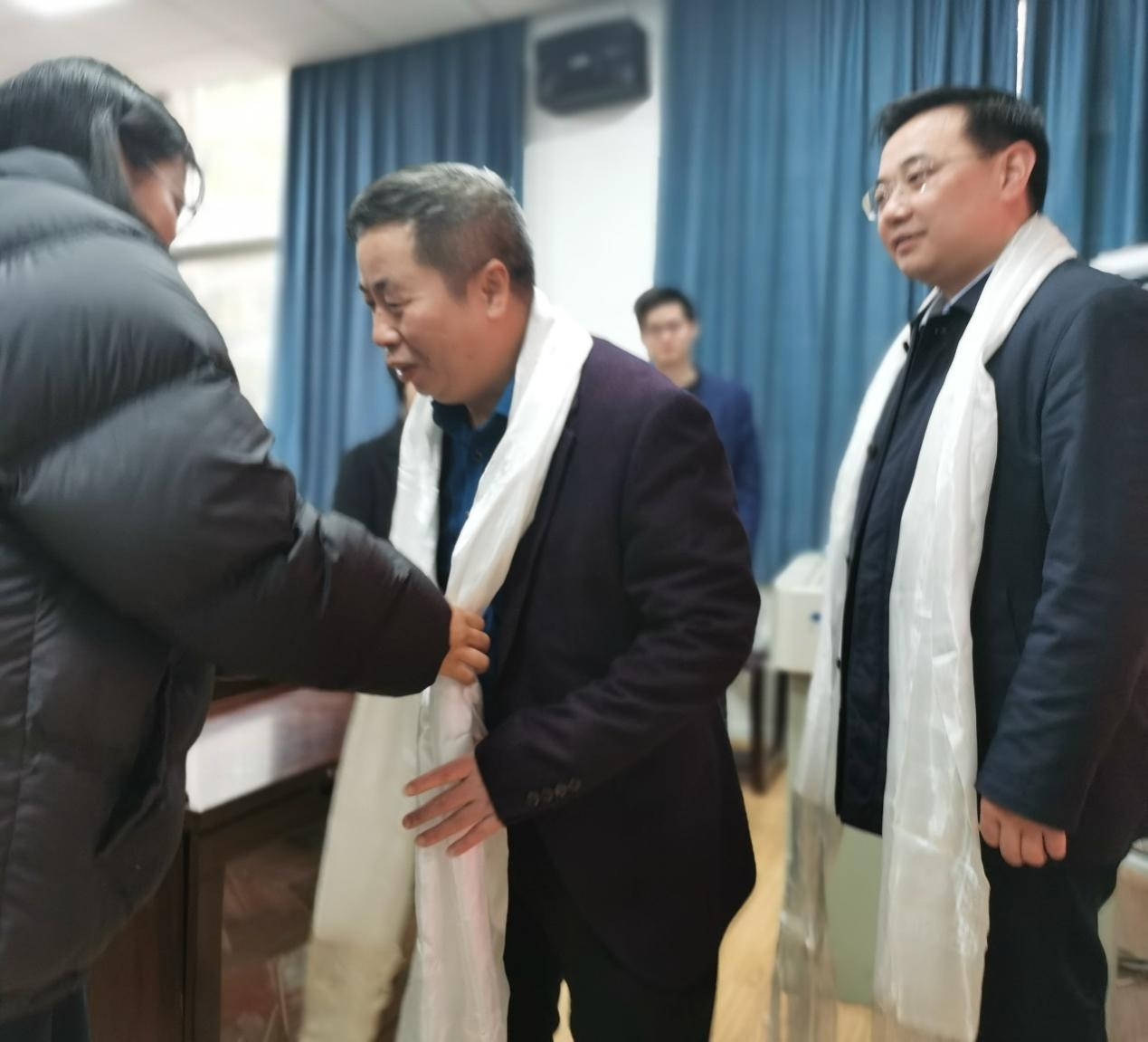 藏族同学给领导、老师们献上哈达