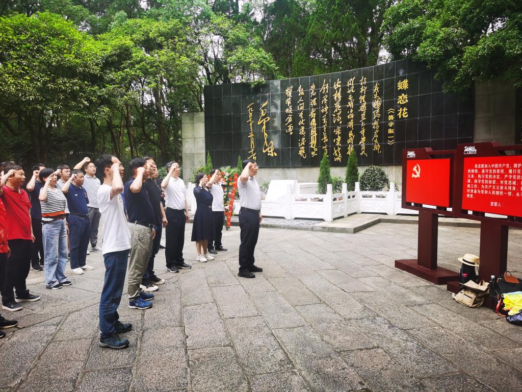 在开慧镇,刘忠耿书记带领党员教师参观杨开慧烈士陵园,向革命烈士敬献花篮、默哀致敬,面向党旗重温入党誓词、进行庄严宣誓,并参观了杨开慧故居,学习杨开慧烈士英勇顽强、不怕牺牲的革命精神。