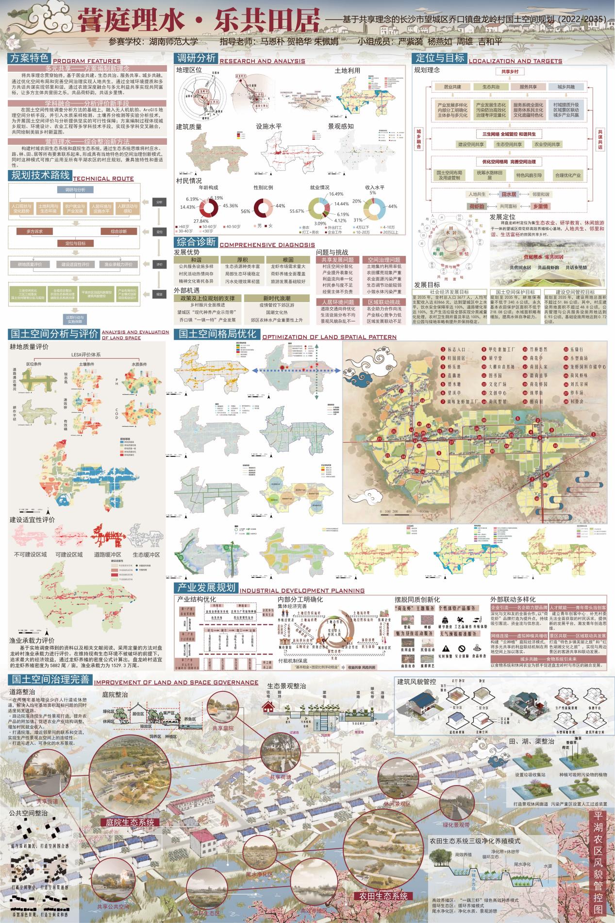 2022年7月16日,第五届全国大学生国土空间规划技能大赛暨乡村振兴背景下国土空间规划高端论坛在华南农业大学举行。大赛采取线上线下相结合的方式进行,并全程视频直播。经过激烈角逐,365官网本科生严紫漪、杨燕如、周雄、吉和平完成的作品《营庭理水·乐共田居——基于共享理念的长沙市望城区盘龙岭村国土空间规划》荣获全国一等奖,马恩朴、贺艳华、朱佩娟获评“优秀指导老师”。