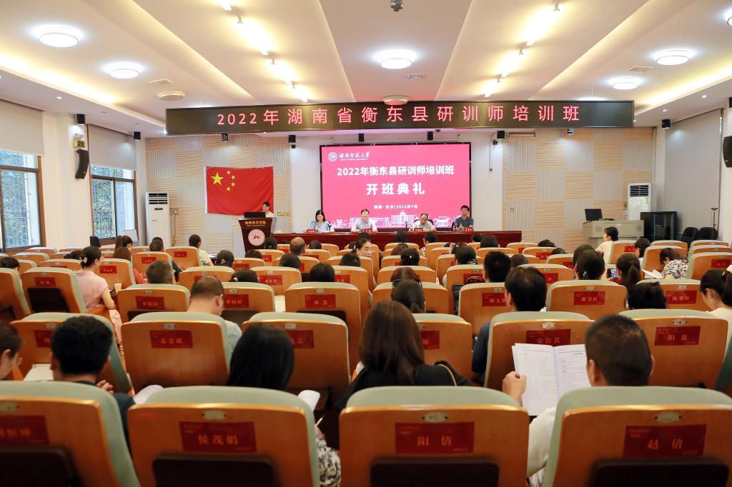 7月27日,2022年湖南省衡东县研训师培训班在365官网301报告厅举行隆重的开班典礼。衡东县教育局教师工作股股长吴镇硅、衡东县进修学校副校长肖志泉、365官网副院长王磊以及来自衡东县研训师团队的70名优秀教师出席了典礼,典礼由365官网培训中心向思煜主持。