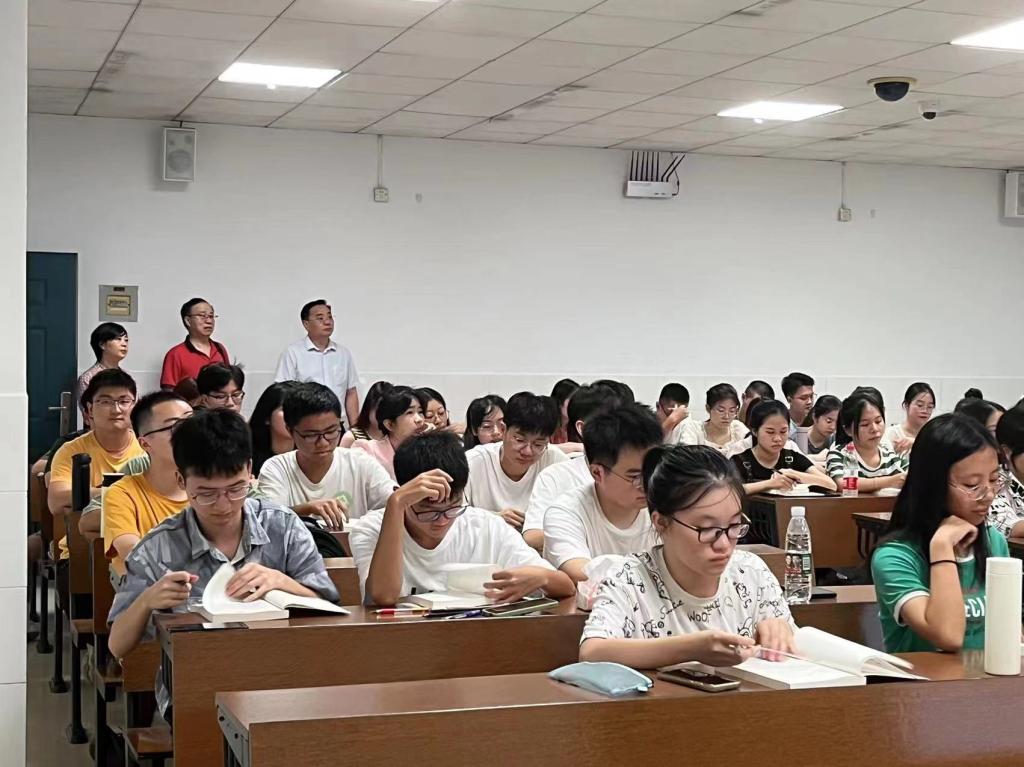 8月29日,新学期开课第一天,为第一时间了解教师教学情况、学生课堂秩序和学习状态,推进教风与学风建设,早上8:00,学院党委书记刘忠耿、院长周国华、党委副书记陈媛、副院长李忠武和学工办、教务办老师一同深入教室开展新学期教学检查。