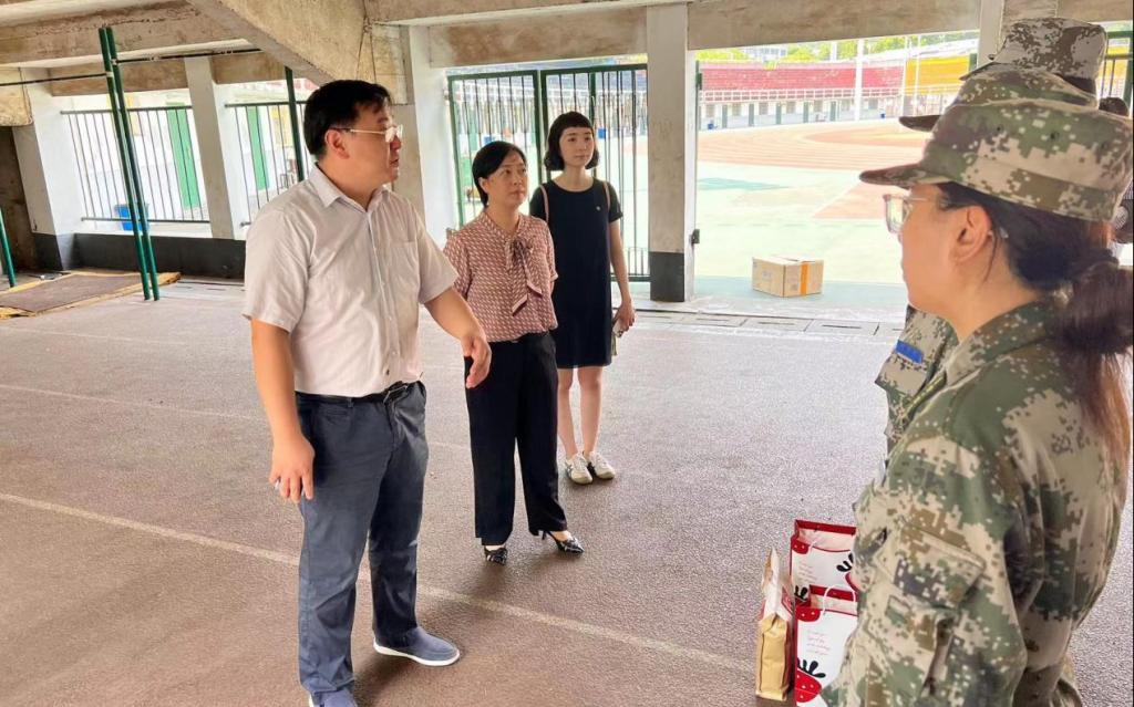 8月25日上午,365官网党委书记刘忠耿、党委副书记陈媛带领学工办全体辅导员来到田径场,看望慰问365官网4名参加湖南师范大学2022年“四会”教练员集训队员,并为队员们送来消暑防暑慰问物品。