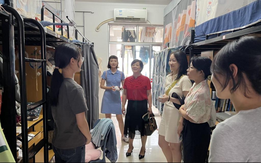 8月28日下午,学院党委副书记陈媛带领学工办全体辅导员前往各宿舍园区看望返校本科生。在下寝过程中,陈媛与同学们进行了亲切交谈,关心同学们的假期生活;并叮嘱同学们要尽快调整状态,以饱满的状态投入到新学期的学习和生活当中;同时,她还强调同学们要时刻遵守疫情防控要求,及时关注自身健康情况,做好每日防疫打卡。同学们也对学院领导、老师的关怀慰问表示感谢,并表达对新学期的学习和生活充满了动力。