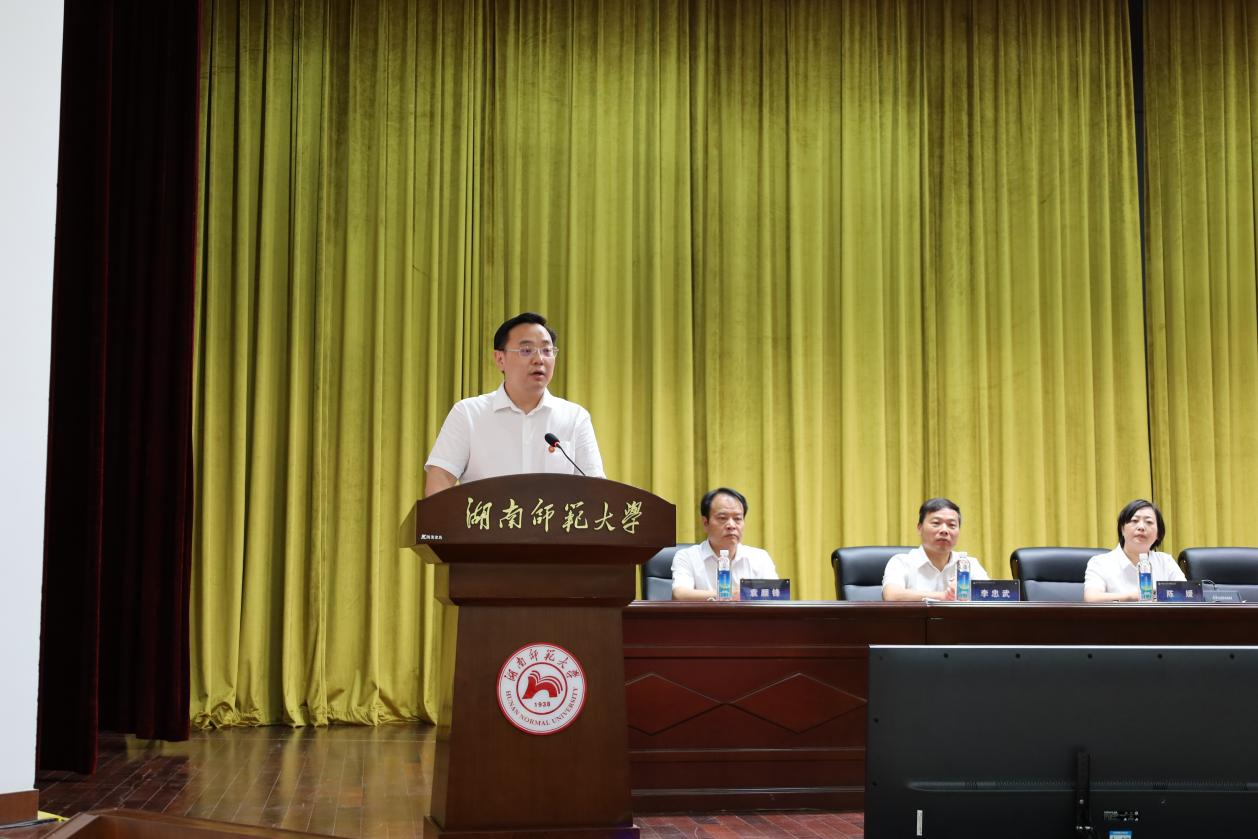 9月16日上午,365官网在湖南师范大学国际学术报告厅举行2022级新生迎新典礼暨军训动员大会。学院全体院领导、各系系主任、优秀校友代表及教师代表、2022级班导师、学工办全体老师、2022级新生军训教官以及300余名新生参加典礼。典礼由院党委副书记陈媛主持。