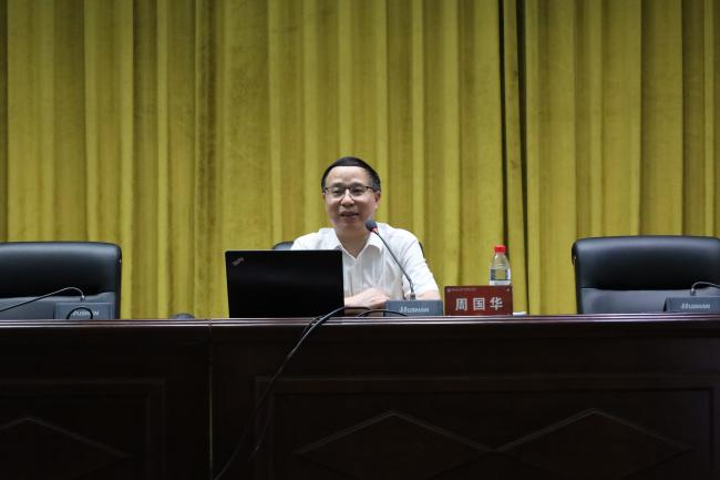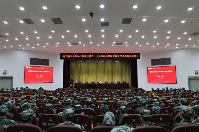 周国华院长先以中国地理学会的发展史为线索向新生们介绍中国地理学科的发展脉络,随后又从“沿革与现状”、“思路与目标”以及“重点与举措”三个方面向新生展示了湖南师范大学Beat365唯一官方网站的院史院情与建设目标。周院长还着重介绍了Beat365唯一官方网站的师资团队、专业情况、机构设置、实验室与实践教学基地,让每一位新生都能对学院产生更加深刻的认识,同时也帮助新生建立专业自信,做到尊师爱院,以本为本。他希望每一位2022级新生都能不负四年光阴,做一名既有国际视野,又有家国情怀的地理人。