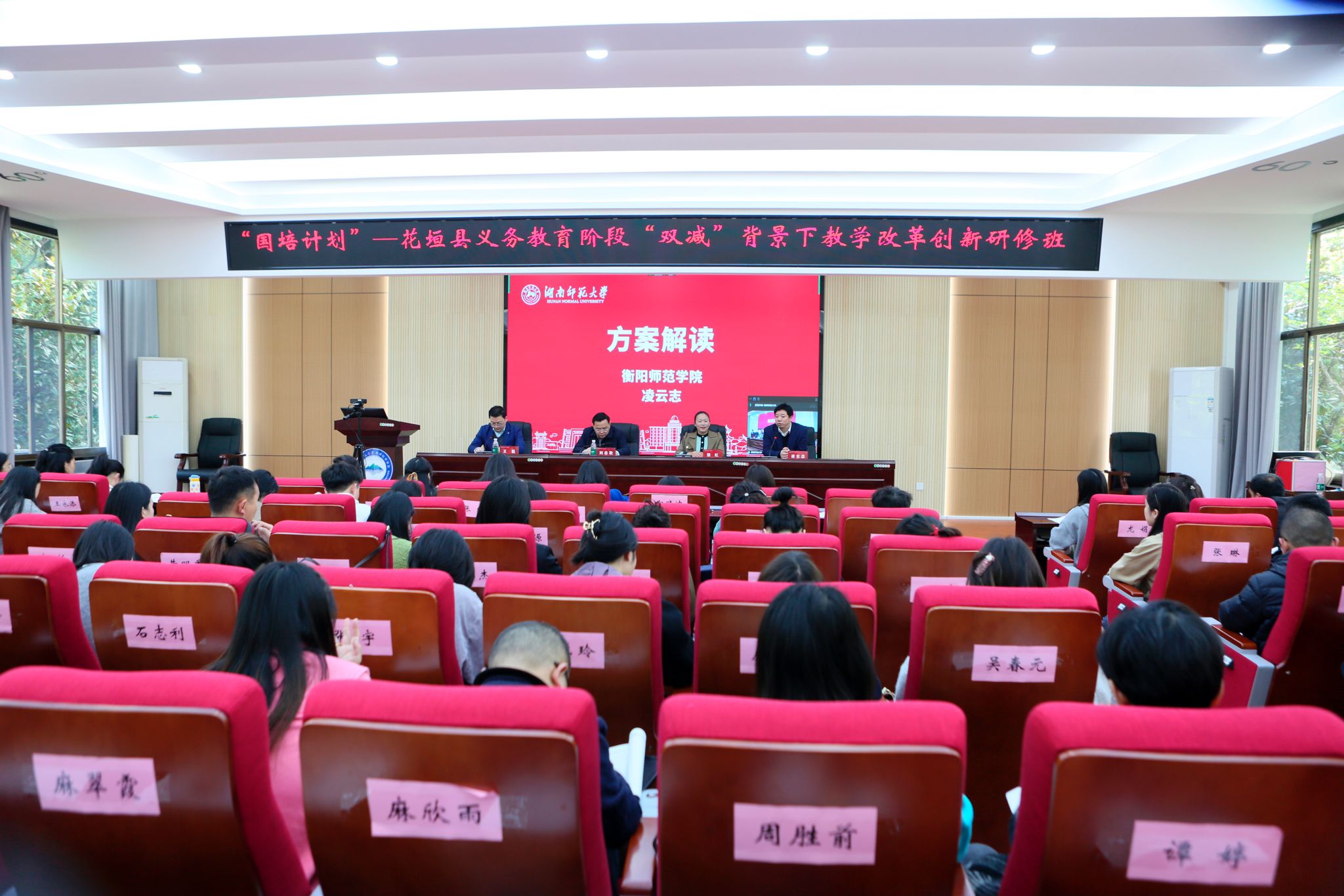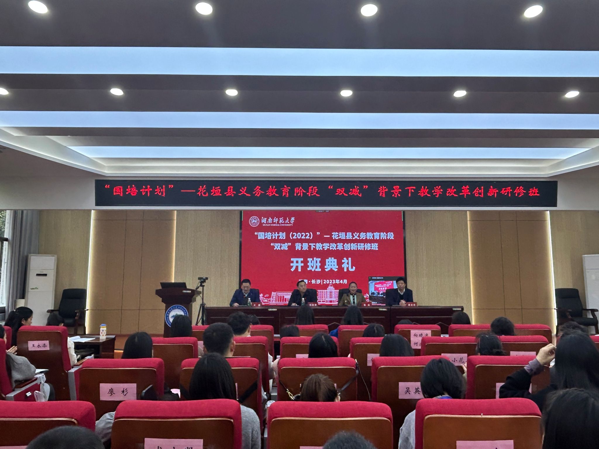 4月7日,“国培计划(2022)”——花垣县义务教育阶段“双减”背景下教学改革创新研修班在365官网301报告厅举行隆重的开班典礼。花垣县教师教师发展中心国培办主任张红、项目首席专家衡阳师范学院凌云志、365官网党委书记刘忠耿以及来自花垣县中小学骨干教师80人出席了典礼,典礼由365官网副院长王磊主持。