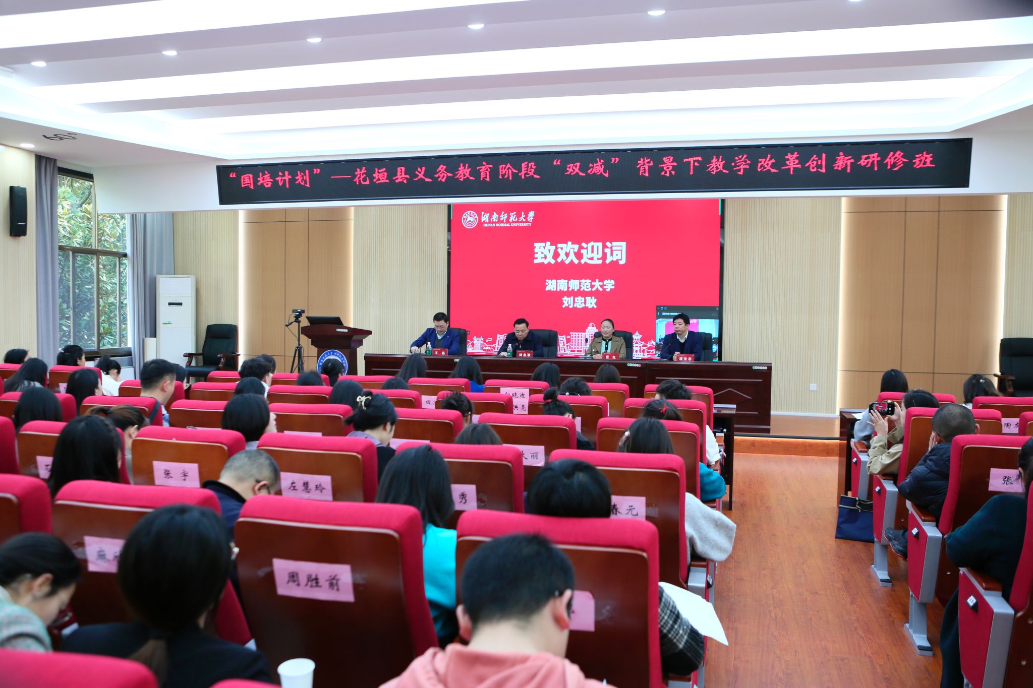 刘忠耿书记代表学校致欢迎词,对前来365官网交流学习的花垣县中小学骨干教师老师表示热烈欢迎,并就我校的办学历史、办学规模、办学成就、师资力量、培训工作等做了简要介绍。他希望全体学员在培训期间多加交流、互相学习、勤于思考、联系实际,做到学有所获、学以致用,把学习到的好的经验运用到今后的工作岗位中,为党和国家的教育教学事业做出更大的贡献。