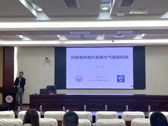 刘忠方教授(国家杰青)的讲座题目为“北极海冰减少及其大气强迫机制”。他巧妙的以科幻电影《后天》为素材,引入对北极海冰消融的介绍。接着,他利用大洋输送带理论,从北极降水模式、中纬度天气与气候、大西洋经向翻转环流(AMOC)减弱等方面,介绍了北极海冰减少产生的气候影响。随后,他进一步解释了引起北极海冰减少的可能机制,如人为温室气体排放、海洋环流影响等。最后,他基于团队所开展的实际研究工作,对夏季和冬季北极海冰消融的不同强迫机制进行了重点介绍,明确了大气强迫对冬季北极海冰消融的主导作用和太平洋-北美震荡(PNA)对夏季北极海冰减少的影响。